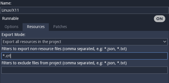 请记住将.crt添加为过滤器,以便导出器在导出项目时识别这一点。