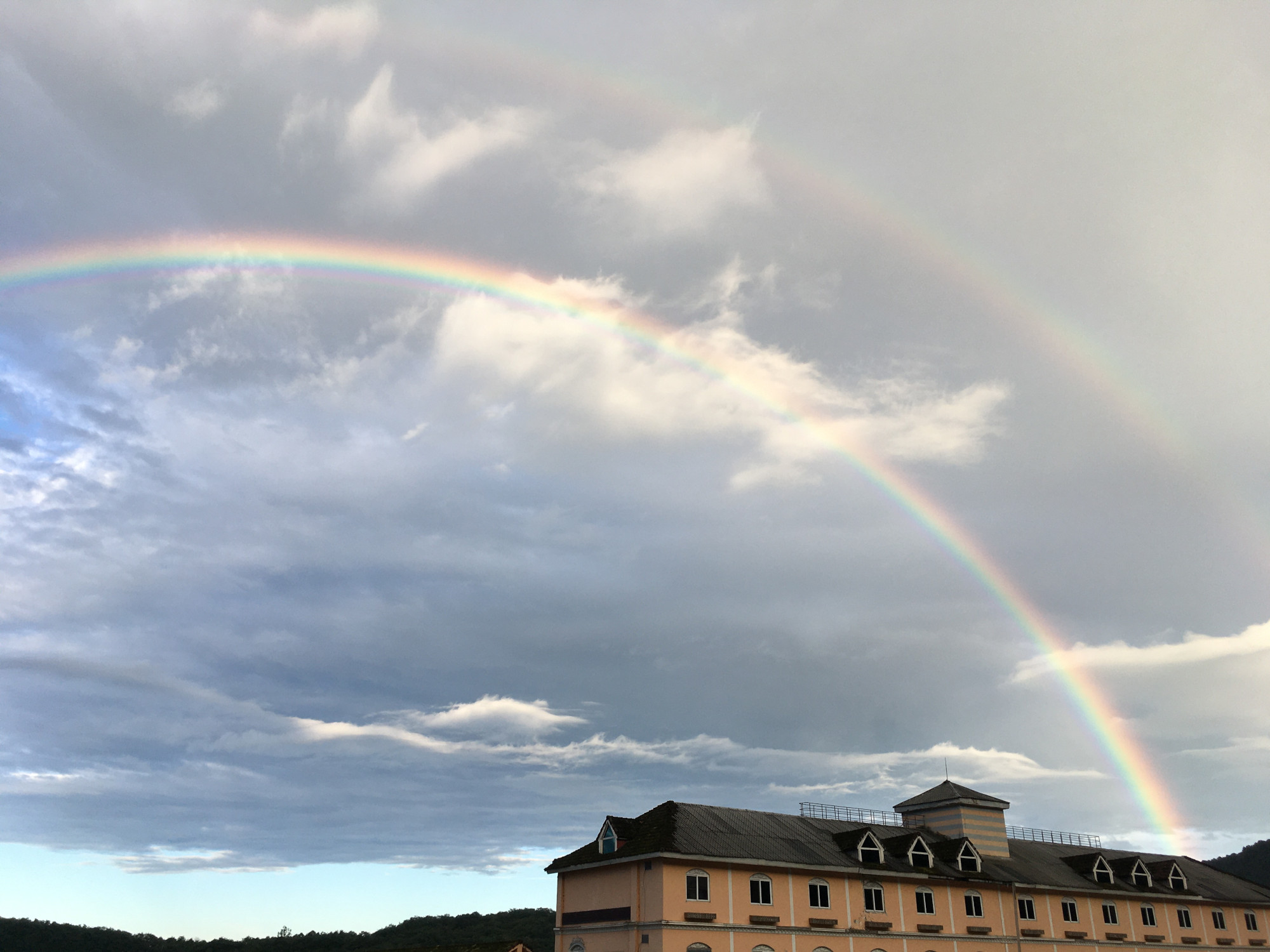 先是看到了单彩虹,晚一些又看到双彩虹,还是比较难得的。适合专业相机拍摄。我这手机也就将就感受一下。